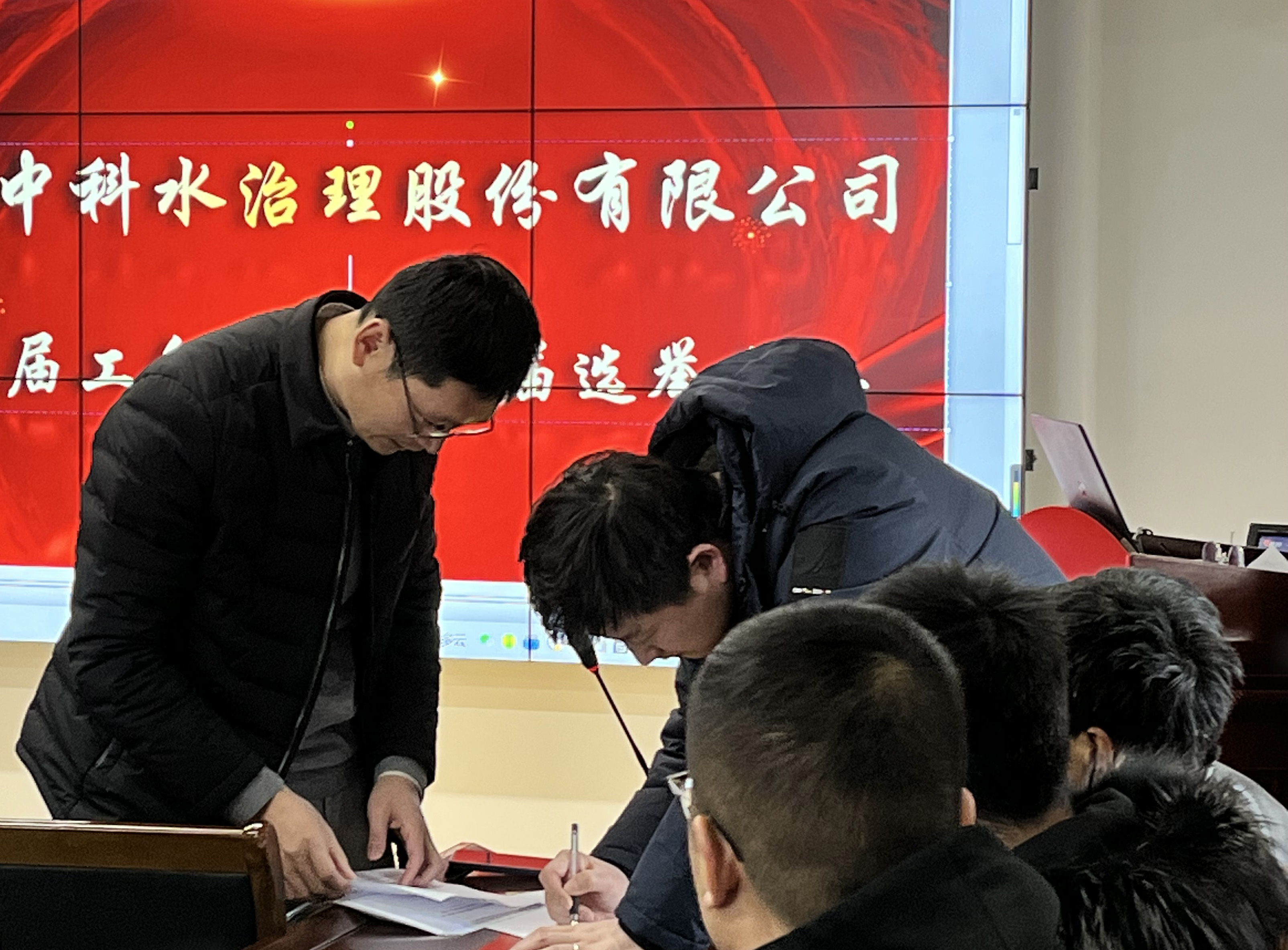 近日,南京中科水治理召開了第三屆工會委員會換屆選舉大會,選舉產生新一屆的工會委員會。會議由公司副總經理周志嶺、工會委員會主任楊新學共同主持,董事長馬亦兵先生出席,公司各部門領導及成員共同參加了會議。