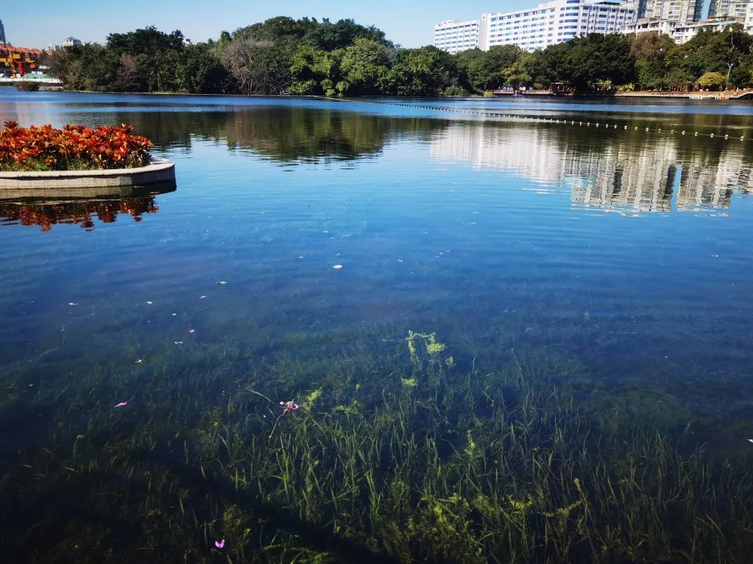 目前,整個(gè)流花湖湖水主要水質(zhì)指標(biāo)總磷、氨氮、COD、BOD5均已達(dá)到國家地表水Ⅳ類標(biāo)準(zhǔn),透明度清澈見底,水下森林清晰呈現(xiàn),形成了良性的生態(tài)自我修復(fù)系統(tǒng)。