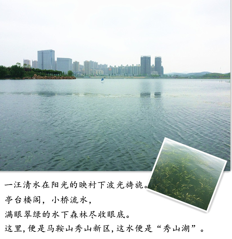 秀山湖是安徽省馬鞍山市秀山新區投資建設的人工淡水湖,水面面積42萬㎡,湖區水深最深4.7m,平均水深2.5m。由南京中科水治理股份有限公司進行湖體的設計和施工工作。