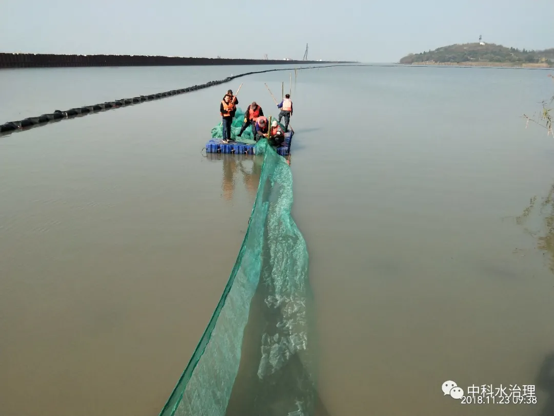 2018年7月,南京中科水治理股份有限公司再次中標太湖水域人工種植水生植物試驗項目。為更好地推動“梅梁湖項目”,貫徹和落實上級領導對本項目的指示,中科水治理以太湖沿岸線為基礎,以圍隔為隔水材料,將太湖水域隔離出封閉水域6萬㎡,并以仿生消浪、漁籪、生態網膜工程為輔助措施,進行太湖水域人工種植水生植物的試驗項目。